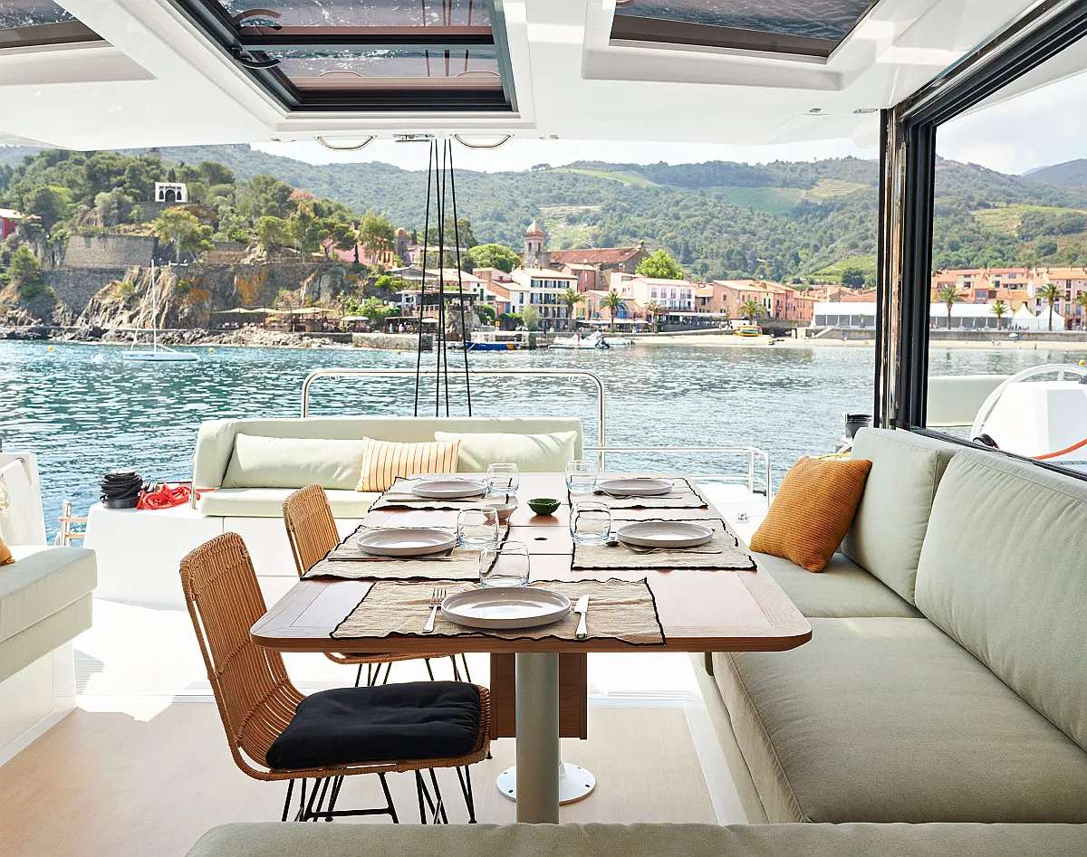 Fridge, Freezer, Electric winch, Electric windlass, Cockpit cushions, Autopilot, Chart plotter, VHF, Fresh water purifier filter, 12V - 130 amp gel service batteries, Battery controller, Courtesy lighting in cockpit / saloon, Gas oven, Aft bench cushions, Helmsman seat cushions, Cockpit shower, Safety equipment, Air condition, Plancha, Genset